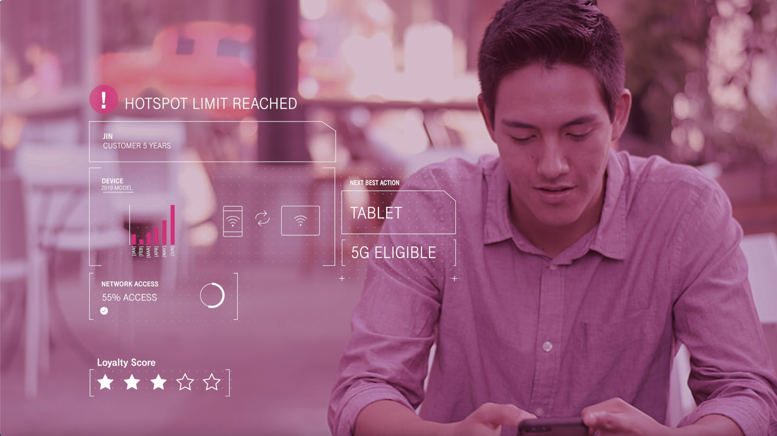 My team worked on developing the future customer service experience strategy for T-Mobile with their product teams. The proof of concept screens and video were used to show how AI and customer service technicians would work together and gather feedback as we prioritized features in implementation. AI was a concern for the customer service team, and internal communication and partnership were central to achieving the strategic roadmap.